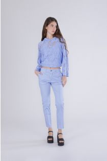 pantalones pitillo teñidos en prenda light blu