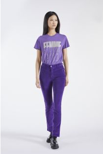 Pantalón con vestibilidad slim de cintura alta confeccionado en cómodo terciopelo en relieve con un precioso botón de charol