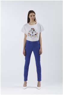 Pantalones con vestibilidad slim. bolsillos americanos. satén de algodón teñido en prenda. cierre con cremallera y botón.