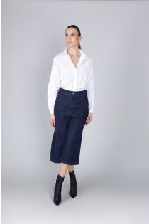 Joggers vaqueros cómodos de corte regular y cropped. Perfectos para looks casuales y contemporáneos, combinan practicidad y estilo con un toque urbano. La modelo mide 173 cm y lleva una talla S.