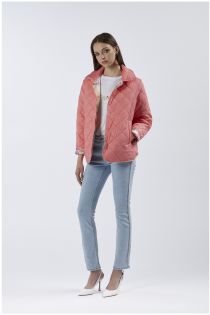 Plumífero con mangas cortas acolchado de rombos confeccionada en nailon impalpable con acabado mate. la prenda es reversible: por un lado un color liso y por el otro un estampado floral icónico de la colección de verano