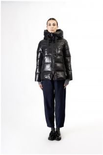 plumífero brillante con forro estampado black