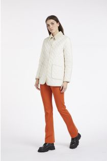 plumífero con pespuntes de tres cuartos y detalles de terciopelo