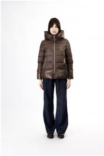 Plumífero de look atrevido y líneas esenciales con capucha fija confeccionado en tejido superligero con acabados brillantes y mate en contraste. versátil y práctico una prenda imprescindible en el armario de la nueva temporada otoño invierno.