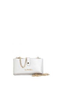 Portamóvil y portadocumentos en material saffiano con asa de cadena y bandolera.