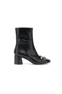 Botines de piel sintética para mujer con cierre frontal dorado. Ajuste cómodo y tacón cuadrado de 6 cm. Elegancia y comodidad para cualquier ocasión.