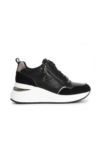 Zapatillas deportivas para mujer en piel revestida con inserciones de ante y cremallera lateral ornamental. plantilla interna.