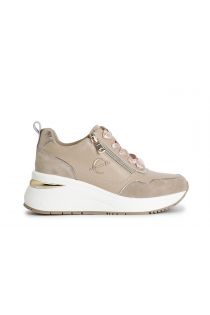 Zapatillas deportivas para mujer en piel revestida con inserciones de ante y cremallera lateral ornamental. plantilla interna.