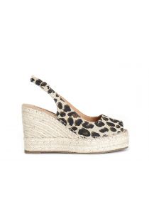 Sandalias peep toe de lona. plantilla de piel. cuña de cuerda de 10.5 cm y plataforma de 3.5 cm. correa ajustable. plantilla de piel.
