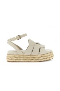sandalia efecto piel sintética con cuña de banda de rafia beige