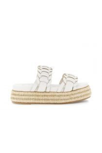 sandalia efecto piel sintética con dos tiras y cuña de rafia. off white