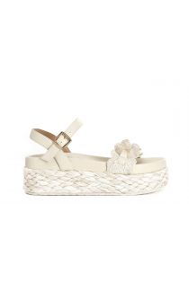 Sandalias color block de rafia tejida con accesorio de cadena de satén transparente. la plantilla es cómoda y la cuña está envuelta en rafia.
