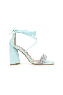 sandalias a la esclava con cinta de pedrería y tacón escultura
