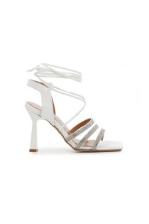 Sandalias a la esclava con punta cuadrada 115 mm, micropedrería en tiras adelante, plantilla y forro de piel.