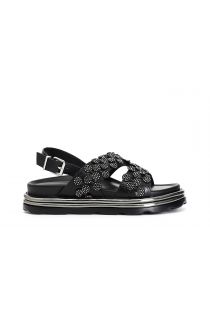 Sandalias asimétricas con enhebrado de pedrería en la banda. cómodo fussbett e inserto laminado visible en la suela. tacón de 40 mm de altura.