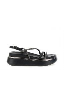 Sandalias con tiras finas adornadas con pedrería correa ajustable y plataforma ligera con ribete metálico. plataforma de 3 cm y suela de 4 cm. un modelo cómodo y deslumbrante perfecto para looks de verano con elegancia minimalista.