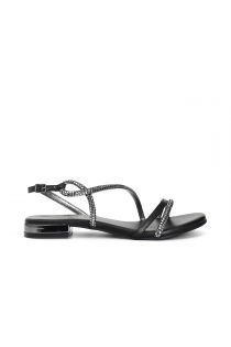 Sandalias asimétricas con pedrería termosellada. el forro y la plantilla son de piel. el tacón es de 1.6 cm.