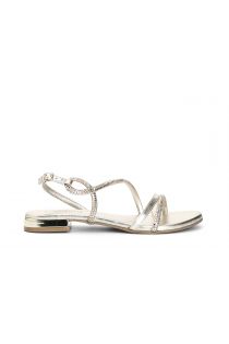sandalias asimétricas con pedrería termosellada gold