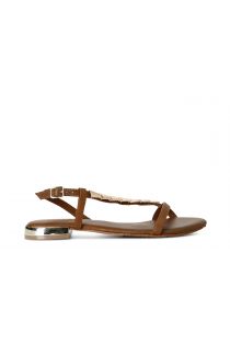 sandalias asimétricas de piel con accesorio tan