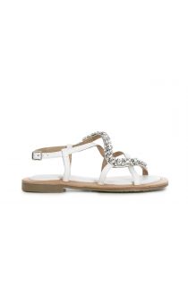Sandalias asimétricas de piel con accesorio joya y tacón bajo.