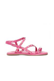 Sandalias asimétricas de piel y tachuelas, vira forrada de piel.