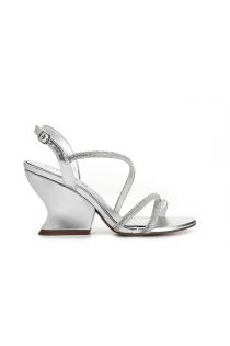 sandalias asimétricas efecto laminado con pedrería silver
