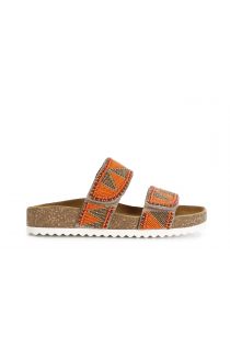 sandalias bajas modelo zapatilla de corcho y pedrería bicolor orange/brown