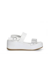 Sandalias modelo fraile con banda bicolor. forma de zapato cómoda. cuña de 6 cm.