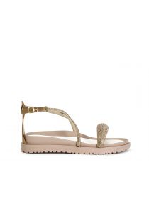 sandalias cerradas por detrás con cordones y pedrería light gold