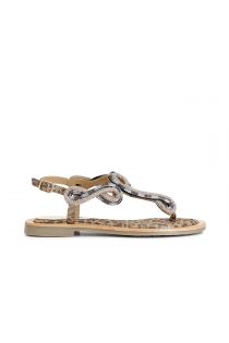 sandalias chanclas de ante y estampado moteado con accesorio de pedrería multi bronze