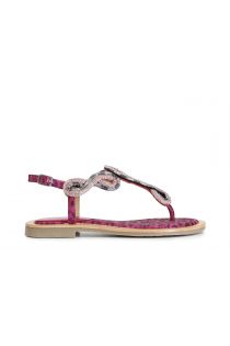 sandalias chanclas de ante y estampado moteado con accesorio de pedrería multi fuchsia