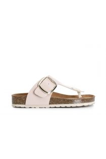 Sandalias chanclas de mujer de charol con hebilla. cómodo lecho del pie.