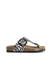 Sandalias chancla de mujer en tejido estampado con hebilla. cómodo lecho del pie.