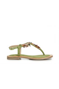 sandalias chanclas de piel de ante con accesorio joya green