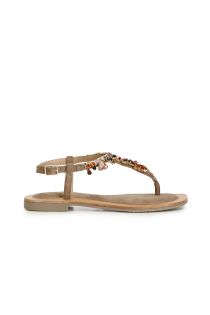 sandalias chanclas de piel de ante con accesorio joya taupe