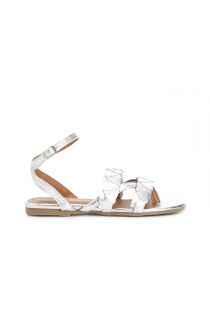 sandalias chanclas de piel metalizada con lazo en el tobillo silver