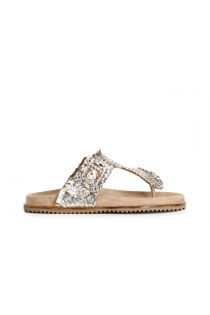 Sandalias chanclas de mujer de piel tejida con hebilla de pedrería. plantilla de piel.