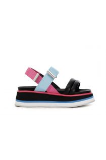 Sandalias de cintas de nailon coloreado con cierre de velcro, suela en micro multi-capas de color y cómodo lecho del pie.