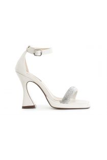 Sandalias con banda de pedrería y refuerzo. tacón de carrete alto. correa ajustable en el tobillo.