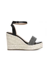 sandalias con bandas de pedrería sobre cuña de esparto black