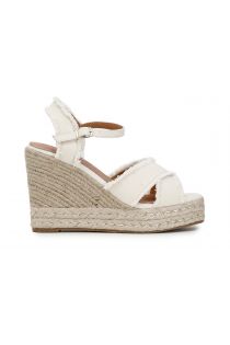 Sandalias con cruce en tejido deshilachado en cuña de esparto de 90 mm h