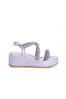 sandalias con cuña con tiras cruzadas de pedrería lilac