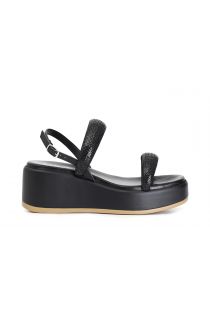 sandalias con cuña y doble tira con pedrería black