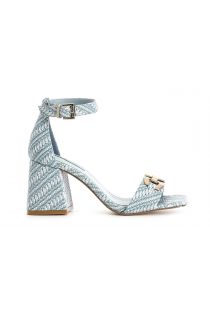 Sandalias con estampado efecto rafia refuerzo cerrado y accesorio dorado. plantilla de piel. tacón de 70 mm de altura.