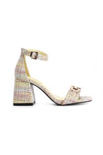 Sandalias con estampado efecto rafia refuerzo cerrado y accesorio dorado. plantilla de piel. tacón de 70 mm de altura.