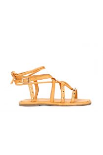 Sandalias con lazo estilo esclava de piel y tachuelas, vira forrada de piel.