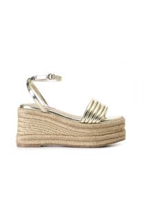 Sandalias con mignon acolchado. plataforma de 55 mm de altura y cuña de esparto de 80 mm.