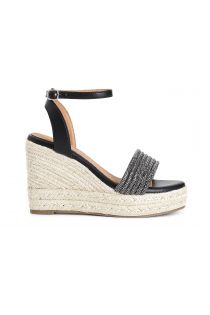 Sandalias con decoración mignons de strass en la pala. cuña de cuerda de 10.5 cm y plataforma de 3.5 cm. correa en el tobillo. plantilla de piel.