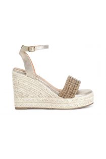 sandalias con mignons de strass sobre cuña de cuerda light gold