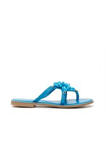 Sandalias con plataforma de media altura a juego con el empeine con doble ribete en contraste y pisada blanca. El fusbett hace cómodo el diseño con una banda decorada por luminosos strass.